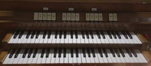 P I, P II , M II - I , Unteroktavkoppel II - I , Tutti als Druckknopf Walze und Schweller sind nicht vorhanden |
