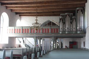 Principal 8' Gedackt 8' Oktave 4' Spitzflöte 4' Nassat 2 2/3' Oktave 2' Blockflöte 2' Mixtur III-IV Trompete 8' Tremulant |