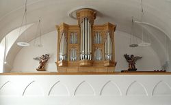 | Spielhilfen, Koppeln: | II/I, I/P, II/P, Tremulant |