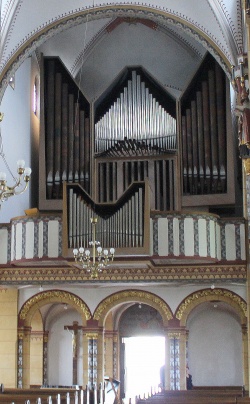 | Spielhilfen, Koppeln: | I/II, III/II, III/I, I/P, II/P, III/P, 2 freie Kombinationen, 2 freie Pedalkombinationen, Tutti, Zungeneinzelabsteller |