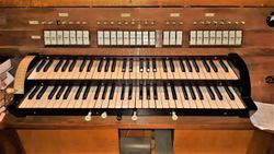 | Spielhilfen, Koppeln: | II/I, I/P, II/P, 1 freie Kombination, Tutti, Zungen Ab, Crescendowalze |