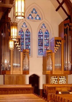 | Spielhilfen, Koppeln: | Koppeln II/I, III/I, III/II, I/P, II/P, III/P; Kombinationen: 6 gen., 4 indiv., Sequ. < >, Tutti |