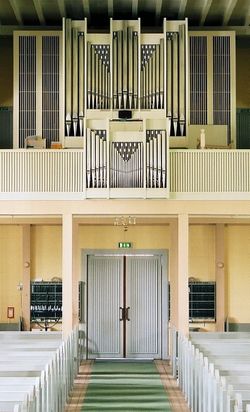 Viola da Gamba 8’ Oktavflöte 4’ Schweizerpfeife 2’ Sesquialter 2fach Scharf 3fach Dulzian 16’ Hautbois 8’ Tremulant |