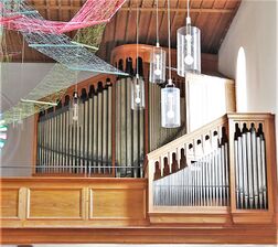 Prinzipal 4' Blockflöte 4' Oktave 2' Quinte 11/3' Sesquialter 2f Scharf 4-5f Dulzian 8' Tremolo |