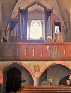 | Spielhilfen, Koppeln: | II/I, I/P; II/P, Tremolo, Tamburo, Rossignoli |