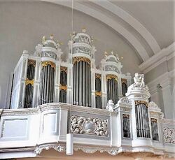 Spielhilfen, Koppeln: II/I, I/P, II/P, 2 freie Kombinationen, 1 freie Pedalkombination, Tutti