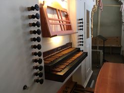 Prinzipal 4′ Bleigedeckt 4′ Nasard 22/3′ Flagiolett 2′ Terz 13/5′ Cymbel 1′ 2 fach Tremulant |