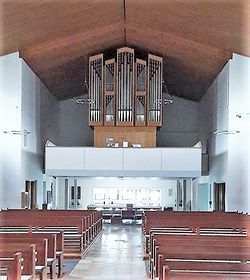 Prinzipal 8' Rohrflöte 8' Oktave 4' Offenflöte 4' Superoktave 2' Mixtur 4f 11/3' Trompete 8' Tremulant |