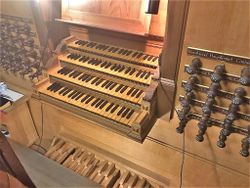 | Manuale: | 4; Hauptwerk, Oberwerk, Brustwerk: CDEFGA–c3; Rückpositiv: CDE–c3 |