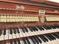 Umbauten: Nach diversen Umbauten wurde die Voit-Orgel 1993 durch die Firma Vleugels originalgetreu restauriert und mit einem zusätzlichen modernen Spieltisch versehen.