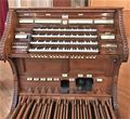 Bemerkung: Das Fernwerk (IV. Manual) mit 18 Stimmen (darunter 5 mit Hochdruck) sowie das zugehörige Fernpedal wurden nie realisiert, es war am Spieltisch daher nur vorgesehen. Es existiert ein zweiter moderner dreimanualiger Spieltisch, der von Vleugels 1993 eingebaut worden war.
