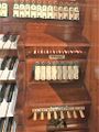 Spielhilfen: 2 freie Kombinationen, Labialtutti, Zungentutti, Generaltutti, Tutti, Crescendowalze, Koppeln aus der Walze, Zungen Ab, Automatisches Pianopedal; Generalschweller
