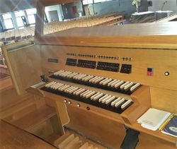 | Spielhilfen, Koppeln: | II/I, I/P, II/P, 1 freie Kombination, Tutti |
