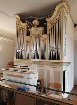| Gehäuse: | von 1836, Johann Victor Gruol der Ältere und Johann Victor Gruol der Jüngere zugeschrieben; seitliche Schleierbretter vermutlich älter, unbekannten Ursprungs |
