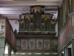 - ↑ 36 Pfeifen (C - h1) Holz offen, 32 Pfeifen (ab c²) Metall überblasend