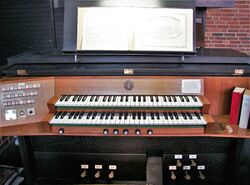 | Spielhilfen, Koppeln: | II/I, I/P, II/P, Sub II/I, Super II/I, 2999 Setzerkombinationen, mechanische Winddrossel |