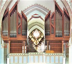 | Geschichte der Orgel: | Die Orgel wurde unter Verwendung von vielen Teilen der Vorgängerorgel neu erbaut. |