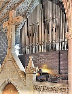| Geschichte der Orgel: | Die Orgel ersetzt ein Vorgängerinstrument der Firma Klais aus dem Jahr 1966, wobei ein Großteil der Register (21) in den Neubau unverändert übernommen wurde. |