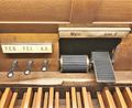 | Spielhilfen, Koppeln: | II/I, II/I (Sub), II/I (Super), II/II (Super), I/P, II/P, 2 freie Kombinationen, 1 freie Pedalkombination (Pedalkombination ebenfalls in den 2 freien Kombinationen enthalten) Piano, Forte, Tutti, Crescendowalze, 16'-Ab, Zungen Ab, Tremolo (Ganze Orgel) |