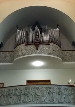 Das Orgelwerk befindet sich in der 2. Empore und somit eine Etage höher, als dort, wo sich der Spieltisch befindet. |