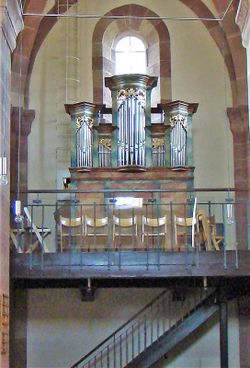| Umbauten: | 1863 Umdisponierung durch Voit (Durlach), 1958 Umbau durch Goebel, 1974 Umbau durch Rensch (Weithestgehende Rückführung der Disposition und Rekonstruktion ersetzter Register) |