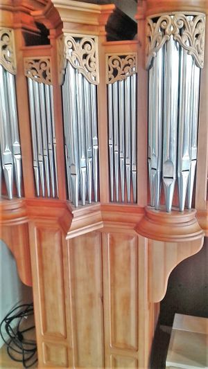 | Geschichte der Orgel: | Die Orgel wurde von Orgelbaumeister Marcus Kaul als Meisterstück gefertigt und 2017 in den Unterbau der Großen Orgel integriert. |