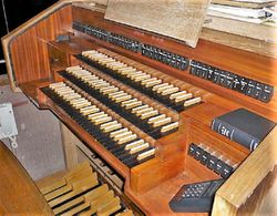 | Spielhilfen, Koppeln: | I/II, III/II, III/I, I/P, II/P, III/P, 6-fache Setzeranlage |