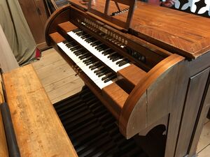 Nach mehreren Veränderungen und Überarbeitungen und aufgrund des ungünstigen Standortes in der neu erbauten Kirche wurde eine neue Orgel angeschafft. |