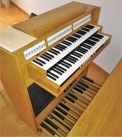 | Spielhilfen, Koppeln: | II/I, I/P, II/P, 6 Setzerkombinationen, Transposer, diverse Stimm-Temperaturen, diverse weitere Spielhilfen |