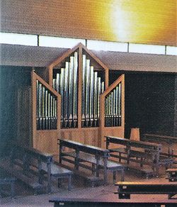 | Geschichte der Orgel: | 2006 wurde die Windanlage der Orgel durch die Firma Kaps vollständig erneuert. Die Orgel wurde 2015 im Rahmen der Kirchenrenovierung abgebaut und nach deren Wiedereröffnung im Jahr 2019 nicht wiedereingebaut. Ein Neubau ist in Diskussion. Zurzeit findet die Gottesdienstbegleitung auf einem Klavier statt. |