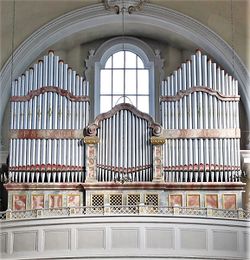 Violon 16' * Subbass 16' * Oktave 8' * Cello 8' * Gedackt 8' Choralbass 4' * Flöte 2' Hintersatz 4f 22/3' Posaune 16' * Trompete 8' * Schalmey 4' |