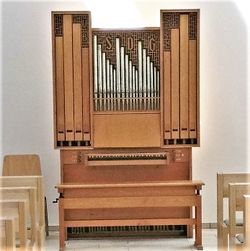| Geschichte der Orgel: | Das Positiv wurde 1983/84 von der Gemeinde erworben und am 29. Januar 1984 eingeweiht. Die Trinitatiskirche wurde in den Jahren 2018/19 an selbiger Stelle durch einen Neubau ersetzt, welcher am 30. Mai 2019 eröffnet wurde. Die Braun-Orgel wurde dabei in den neuen Kirchenraum übernommen. |