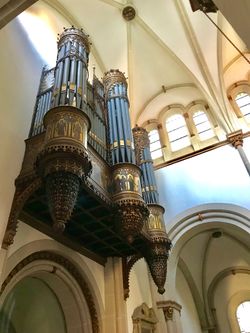 | Geschichte der Orgel: | Die Orgel wurde 1882 von Friedrich Fleiter unter Verwendung von Pfeifenmaterial aus der Vorgängerorgel von Melchior Kersting errichtet. 1955 und 1983 führte Franz Breil für das Instrument nachteilige "Restaurierungen" aus, bei der u.a. der Spieltisch erneuert, das Hauptwerk auf das untere Manual verlegt und die Disposition barockisiert wurden. Im Pedal wurde eine neue Schleiflade mit vergrößertem Tonumfang eingebaut.