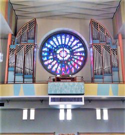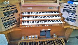 | Spielhilfen, Koppeln: | I/II, III/II, III/I, I/P, II/P, III/P, 2 freie Kombinationen, 1 freie Pedalkombination, Tutti, Organo Pleno, Crescendowalze, Zungen Ab |