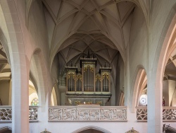| Umbauten: | 1959 Erweiterung: Philip Eppel, Pedalumfang auf 30 Töne ergänzt, Austausch der Zinkpfeifen im Prospekt |