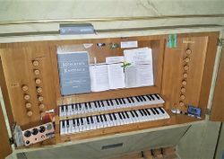 Salicional 8' Koppelflöte 4' Prinzipal 2' Quinte 11/3' Sesquialter 2f Cymbel 4f Tremulant |