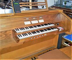 | Spielhilfen, Koppeln: | II/I, I/P, II/P, 2 freie Kombinationen, Tutti |