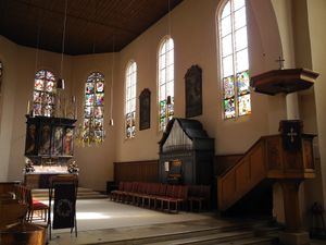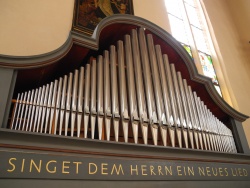 | Umbauten: | 2011 durch Orgelbauer Benedikt Friedrich, Oberasbach: Überarbeitung der Ton- und Registertraktur, Verbesserung der Windstößigkeit, Austausch des Registers Scharff 4f. durch das neue Register Quinte 2 2/3', Nach- und Umintonation |