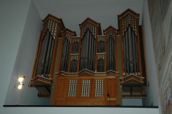 | Spielhilfen, Koppeln: | II/I, I/P, II/P, 2 freie Kombinationen, 1 freie Pedalkombination, Tutti, Absteller für Mixturen und Zungen |