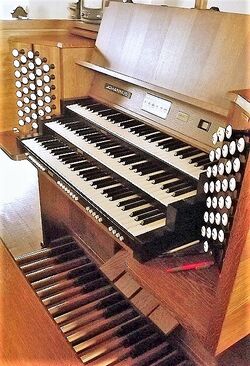 | Spielhilfen, Koppeln: | I/II, III/II, III/I, I/P, II/P, III/P, Setzeranlage, drei Schwelltritte |
