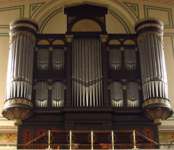 | Geschichte der Orgel: | Erste Orgel der Kirche 1869-70 von Carl August Buchholz (II+P/24), 1917 Abgabe der Zinn-Prospektpfeifen für die Rüstung - ersetzt durch Zink.