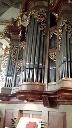 | Spielhilfen, Koppeln: | Manualkoppel (als Zug), Pedalkoppeln (I/P, II/P) als Tritt |