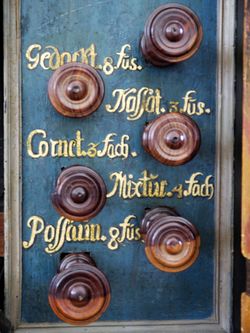 Principal 4' [2] RohrFlöt 4' [3] Nassat 3' [4] Octav 2' [5] Cornet 3 fach [3] Mixtur 4 fach [6] |