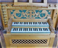 - ↑ Tonumfänge der Manuale: C-f³, des Pedals: C-c¹