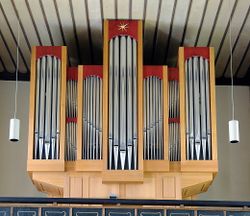 Prinzipal 8′ Holzflöte 8′ Oktave 4′ Traversflöte 4′ Oktave 2′ [1] Mixtur III–IV 2′ Fagott 16′ Trompete 8′ |