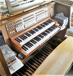| Spielhilfen, Koppeln: | II/I, I/P, II/P, 2 freie Kombinationen, Tutti, Zungeneinzelabsteller |