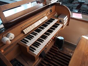 Spieltisch der Orgel