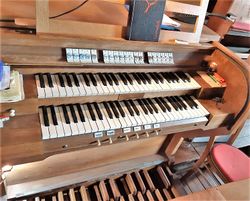 | Spielhilfen, Koppeln: | II/I, II/I (Sub), I/P, II/P, Piano, Forte, Tutti, Automatisches Pianopedal, Auslöser |