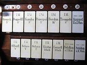 | 19:22, 9. Mai 2020 | Berlin-Frohnau, Johanneskirche, Register.JPG (Datei) | 664 KB | {{Dateiinfo |Beschreibung = Berlin-Frohnau, Johanneskirche, Register |Datum = 19.05.2019 |Autor = Wolfgang Reich |Quelle = Eigene Aufnahme |Lizenz = }} Orgelbilder / Registerzüge | 1 | |