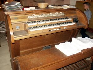 | Spielhilfen, Koppeln: | Koppeln: II-I, Super II-I, Sub II-I, Super I-I, Sub I-I, Super II-II, Sub II-II, Pedaloktavkoppel, Pianopedal ab, PK I, PK II, pp, p, mf, f, ff, Pl, als Kollektive sowie eine Registerwalze |